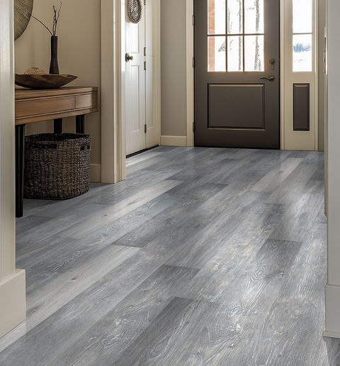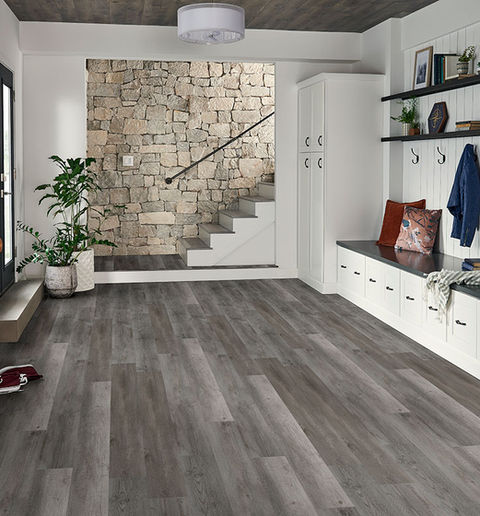 Whitfield Gray Luxury Vinyl Tile from the Everlife Rigid Core (RC) Collection offers sophisticated grey tones with light knots and graining for an authentic wood appearance in a 7x48” low-maintenance flooring. This luxury vinyl plank is 100% waterproof flooring, scratch, stain, and dent resistant, and backed by a lifetime residential warranty. Its innovative pre-attached backing ensures supreme comfort under foot while its easy-install locking system make it DIY-friendly. In the kitchen, living area, bathroom, basement, and beyond, there’s no easier way to create luxurious, affordable floors. Find coordinating vinyl flooring trim pieces below. Available trim items include end caps, stair noses, reducers, and T-molding.
