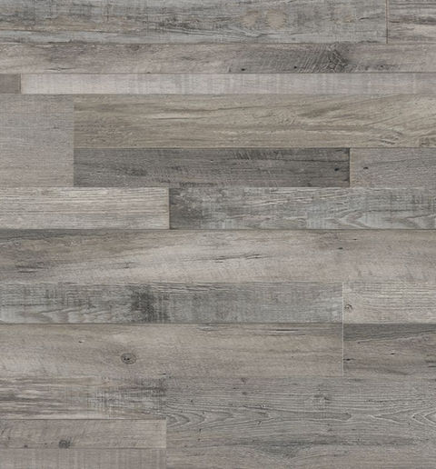 Mezcla Luxury Vinyl Planks from the Rigid Core Prescott Series are 7x48 vinyl plank flooring with high shade variations that include grays, tans, and taupes. The darker gray knots and grains give it an authentic hardwood look. They feature an easy-click system for a simplified installation process, a comfortable pre-attached backing, and commercial-grade wearlayer. The 100% waterproof LVP flooring can also be added to any room, including wet spaces like kitchens, bathrooms, and laundry rooms. The soft coloring makes it easy to blend with various interior design styles.