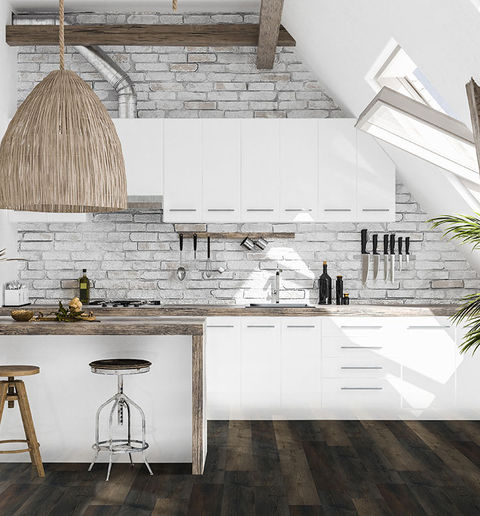 Weathered Brina Luxury Vinyl Planks feature a mixture of brown hues with tans, light grays, and whites for a well-worn, weathered look that's right on-trend. The high-variation, 100% waterproof vinyl plank flooring with distinct knots and grains will be the highlight of any residential or commercial space, including wet areas like kitchens, bathrooms, or laundry rooms. The 7x48 LVP flooring comes with a durable wearlayer for added protection, a pre-attached backing for extra comfort, and an easy-click system for simple installation